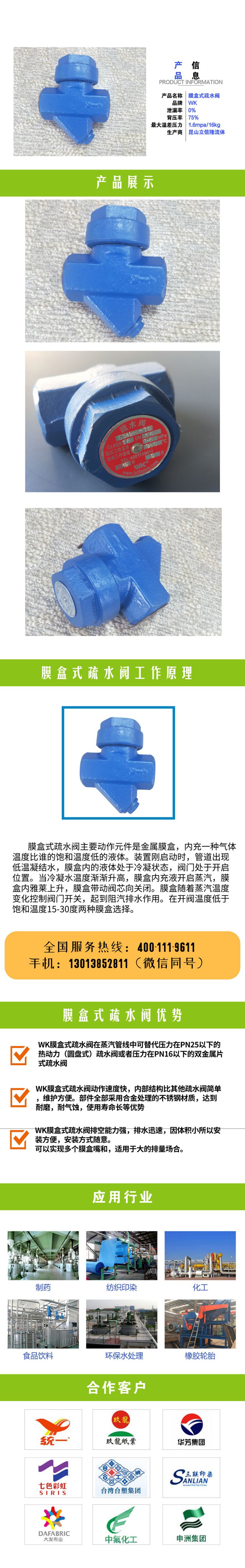 WK膜盒式牙口疏水閥排空能力強,排水速度,因體積小所以安裝方便,安裝方式隨意。